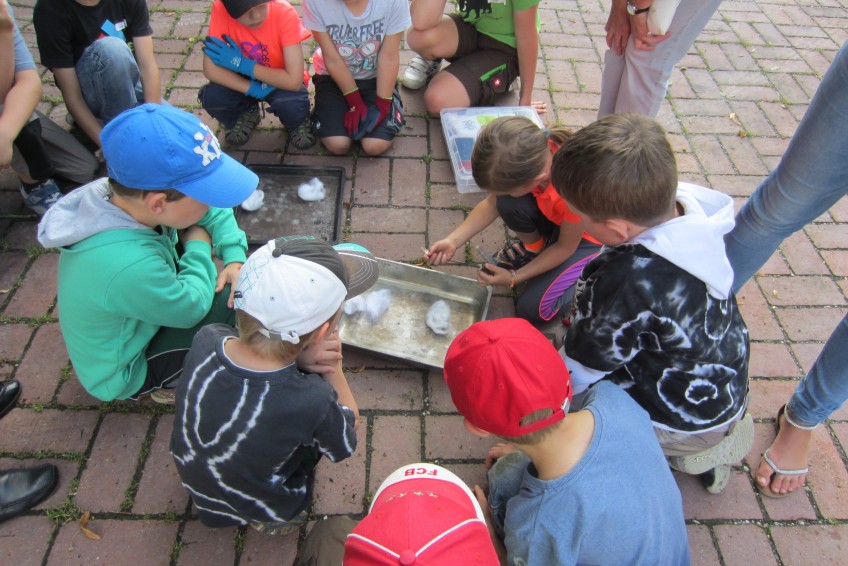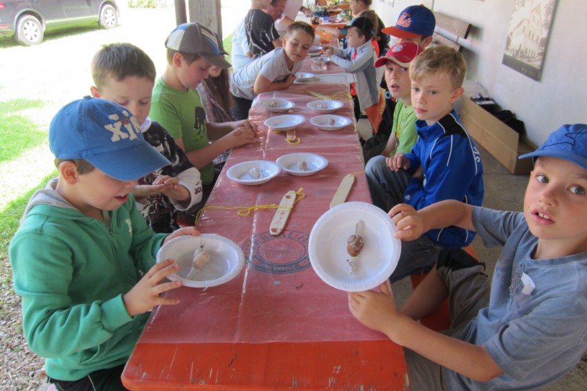 Nach dem Besuch des Museums haben sich alle die gemeinsame Brotzeit mit Brot und Wurst, Nüssen, Gemüse und Früchten schmecken lassen. Am Nachmittag konnten die Kinder dann Brumm-Hölzer basteln und ausprobieren, Schnecken formen und ihr Jagdglück mit Pfeil und Bogen versuchen. Ein Höhepunkt des Tages war sicherlich das Feuermachen mit einem Feuerstein.